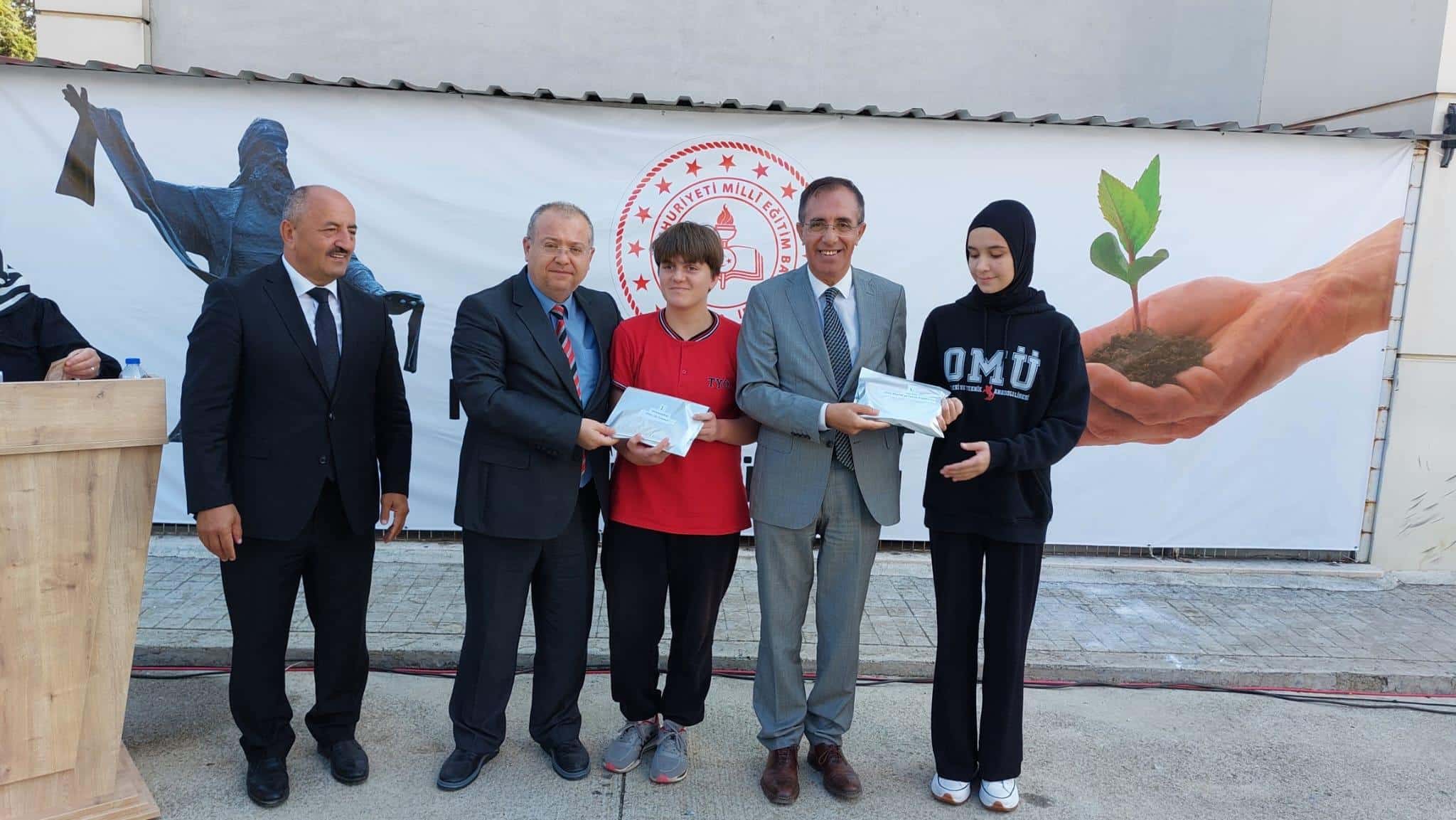 Dereceye giren öğrencilere ödülleri protokol üyeleri tarafından takdim edildi.