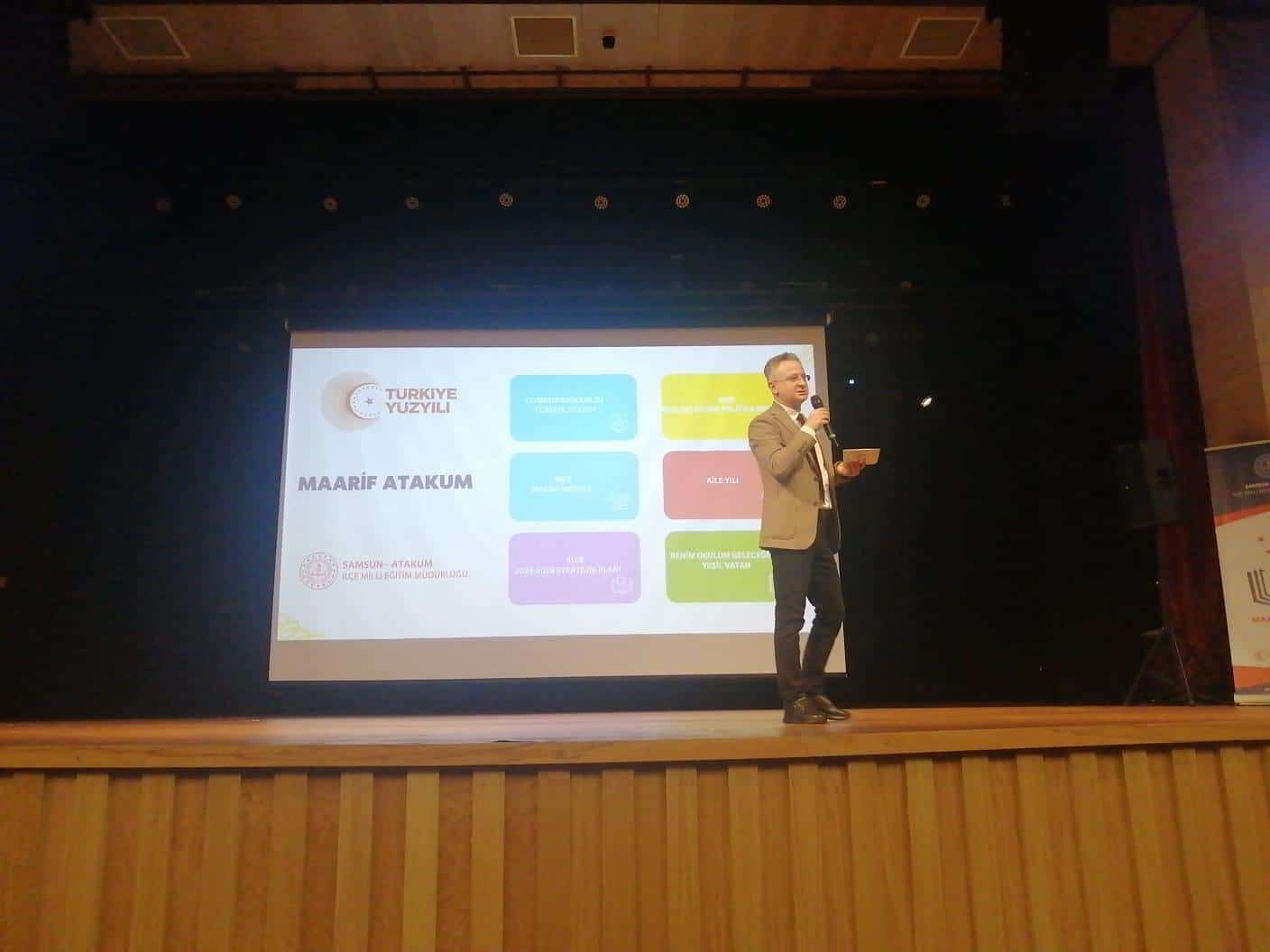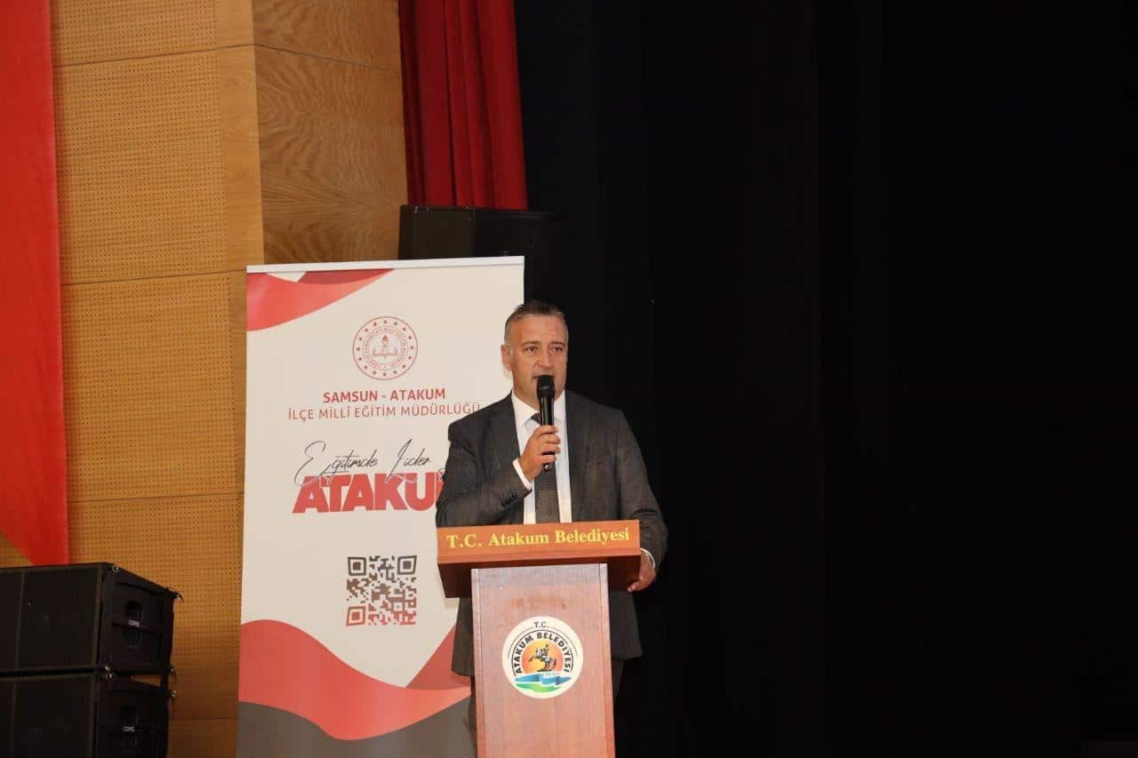 İlçe Milli Eğitim müdürümüz Yüksel AYDIN yaptığı konuşmada "Maarif Atakum" Projemiz hazırlanırken; Türkiye Yüzyılı Maarif Modeli, ülkemizin dinamik vizyonuyla güçlü bir şekilde varlığını devam ettirmesi bir ödev bilinmiş; Bakanlığımız ve İl Milli Eğitim Müdürlüğümüz tarafından uygulamada olan tüm projelerle koordine edilmiş ve milli manevi tüm ilkelerimiz esas alındığını belirtti.